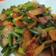 腊肉、蒜苔、蒜、姜、豆瓣酱。