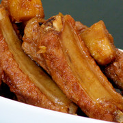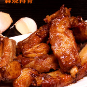 猪肋排骨、蒜、葱、蒜散、料酒、盐、老抽、料酒、糖、盐、油、水。