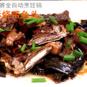 带鱼头、海带结、五花肉、水量、姜片、大蒜、糖、老咸菜、香油、料酒、老抽、醋、油、香葱。