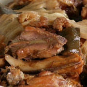 三黄鸡、水发香菇、瘦猪肉、虾仁、火腿、料酒、盐、豆瓣酱、白糖、丁香、八角、豆瓣酱、料酒、油、水。