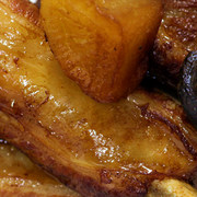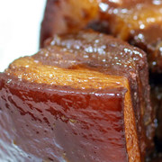 五花肉、大蒜、葱、姜、料酒、花椒、八角、盐、冰糖、酱油、水。