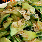 虾皮、青瓜、葱丝、姜末、老抽、料酒、水淀粉、盐、油、清水。