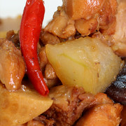 鸡腿、冬笋、冬瓜、香菇、干辣椒、葱、姜、料酒、老抽、盐、油、水。