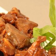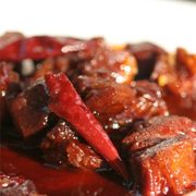 牛肉、姜、葱、干辣椒、奥尔良料、盐、白糖、老抽、水。