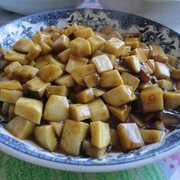 老豆腐、葱末、蒜末、青椒、干辣椒、花椒、盐、香辣酱、鸡精、白糖。