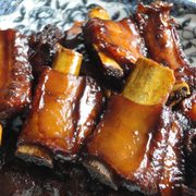 排骨、葱 、姜、八角、桂皮、香叶、盐、鸡精、料酒、生抽、老抽、白醋、冰糖。