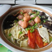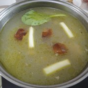 排骨、葱、姜、蒜、土豆、羊肉卷、豆皮、香菇、青菜、火腿、麻花、香油、油泼辣椒、芝麻酱。