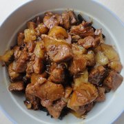 五花肉、啤酒、八角、大料、葱、盐、鸡精、冰糖、生抽、老抽。