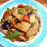 豆腐、青红柿椒、香菇、蛋皮、葱、姜、蒜。