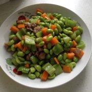 青豆、胡萝卜、瘦肉、青椒、盐、味精、糖。
