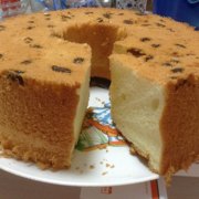 八寸戚风、黑巧克力屑、奶油、葡萄干、杏仁碎。
