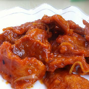 里脊肉、番茄酱、葱丝、姜丝、精盐、料酒、白糖、水淀粉、醋、味精、橙汁。
