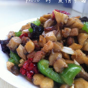蘑菇根、柿子椒、泡发木耳、五花肉、葱、蒜、干红辣椒、蚝油。