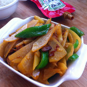 土豆、青椒、五花肉、亨氏番茄酱、蚝油、盐、鸡精。