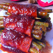 豇豆、培根、亨氏番茄酱、蒜蓉辣酱、黑胡椒粉。