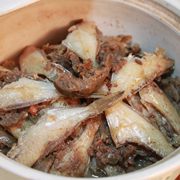 尖沙鱼、脱皮鱼、咸橄榄、姜、油。