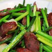 腊肠、蒜苔、蒜、盐。