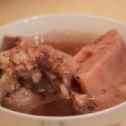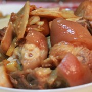 猪脚、酸荞头、酸姜、酸椒、鲜辣椒、蒜、酱油、盐、糖、老抽。