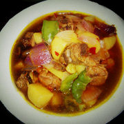 鸡腿、土豆、洋葱、青椒、面条、葱、姜、郫县豆瓣酱、糖、盐、啤酒、酱油。