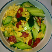 黄瓜、鸡蛋、广味腊肠、盐、葱、水。