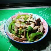青甜椒、香菇、瘦肉、油、酱油、料酒、淀粉、盐。