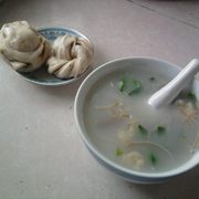 面粉、花生米、豆腐皮、菠菜、姜末、盐、胡椒粉、醋、香油。