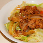 猪肉、卷心菜、胡萝卜、洋葱、西红柿、葱、姜、蒜、花椒、酱油、料酒、老抽、盐、糖。