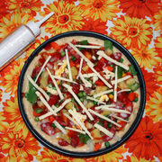 匹萨皮、高筋面粉、温水、芝士、甜椒、胡萝卜、洋葱、青豆、玉米粒、香肠、糖、盐、橄榄油、番茄酱。