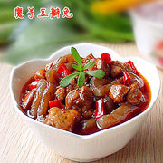 北豆腐、猪肉末、全蛋糊、姜末、蒜末、葱末、泡辣椒末、玉米油、盐、白胡椒粉、料酒、生抽、蕃茄酱、香醋、白糖、鸡精、水淀粉。