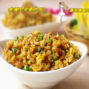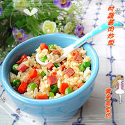 米饭、自制酱肉、鲜豌豆、胡萝卜、青尖椒、玉米油、鸡精、盐、姜葱蒜粉、生抽、葱花。