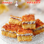 低粉、糖粉、鸡蛋、玉米油、香草粉、椰蓉、鸡蛋、白糖、蓝莓果酱。
