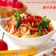 年糕、猪肉丝、榨菜丝、莲花白、青尖椒、红小米椒。