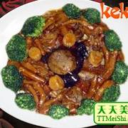 鸡腿、猪肉、鹌鹑蛋、鲜鱿鱼、冬笋、胡萝卜、香菇、西兰花、料酒、酱油、盐、白砂糖、胡椒粉、玉米淀粉。