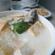 鲫鱼、大豆、豆腐、生姜、香菜、盐、油。