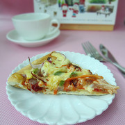 鱿鱼、胡萝卜、青椒、洋葱、芝士、面粉、辣酱、番茄酱、黄油、酵母、盐、糖。