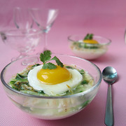 内脂豆腐、小青菜、鸡蛋两个、虾皮、骨头汤、盐、香油。