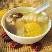 鸡肉、胡萝卜、玉米、红枣、生姜、盐、花。