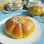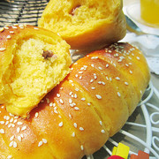 南瓜、鸡蛋、面粉、酵母粉、奶油、盐、糖、水、芝麻、红豆沙。