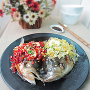 鱼头、青红剁辣椒、姜、葱、蒜、盐、料酒、蒸油鼓油、油。