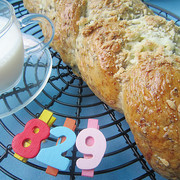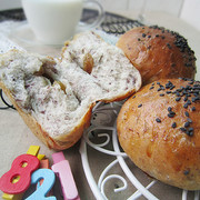 红豆皮、鸡蛋、面粉、牛奶、葡萄干、黑芝麻、酵母粉、盐、糖。