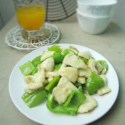 鸡胸肉、青椒、盐、油、玉米淀粉。