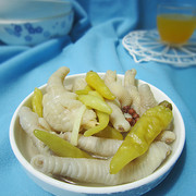 鸡爪、泡椒、糟卤、姜、蒜、八角、花椒、香叶、白糖、白醋、盐、料酒。