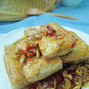 豆腐、青红剁辣椒、姜、蒜、盐、料酒、豆瓣酱、油。