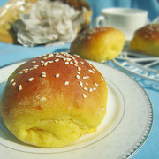 南瓜、鸡蛋、面粉、酵母粉、黄油、盐、糖、水、鸡蛋、芝麻、肉松。