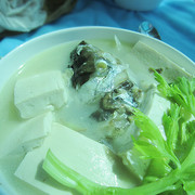豆腐、鱼头、芹菜、姜、蒜、盐、油。