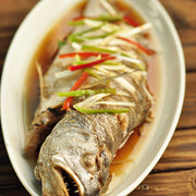 海鱼、油、青红椒丝、葱丝、姜丝、料酒、盐、李锦记蒸鱼豉油。