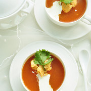 番茄、芹菜、洋葱、胡萝卜、鸡汤、橄榄油、胡椒粉、淡奶油、盐。