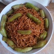 面条、豆角、花生油、香油、花椒、盐、蒜。