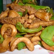 牛肚、青椒、黄芪、砂仁、醋、糖、盐、鸡精、料酒、胡椒、老抽、葱、姜。