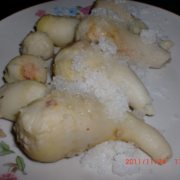 猪肉、莲藕、葱花、醋、盐、老抽、料酒、豆油、白糖、豆瓣酱、鸡精。